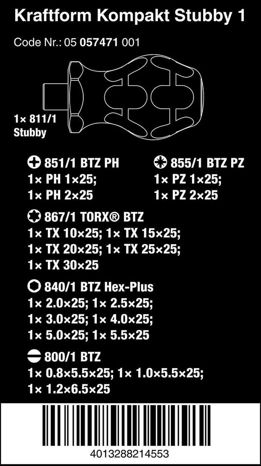 Bicycle screwdriver tool set 19 pieces Wera Kraftform Kompakt Stubby 1 ref.057471