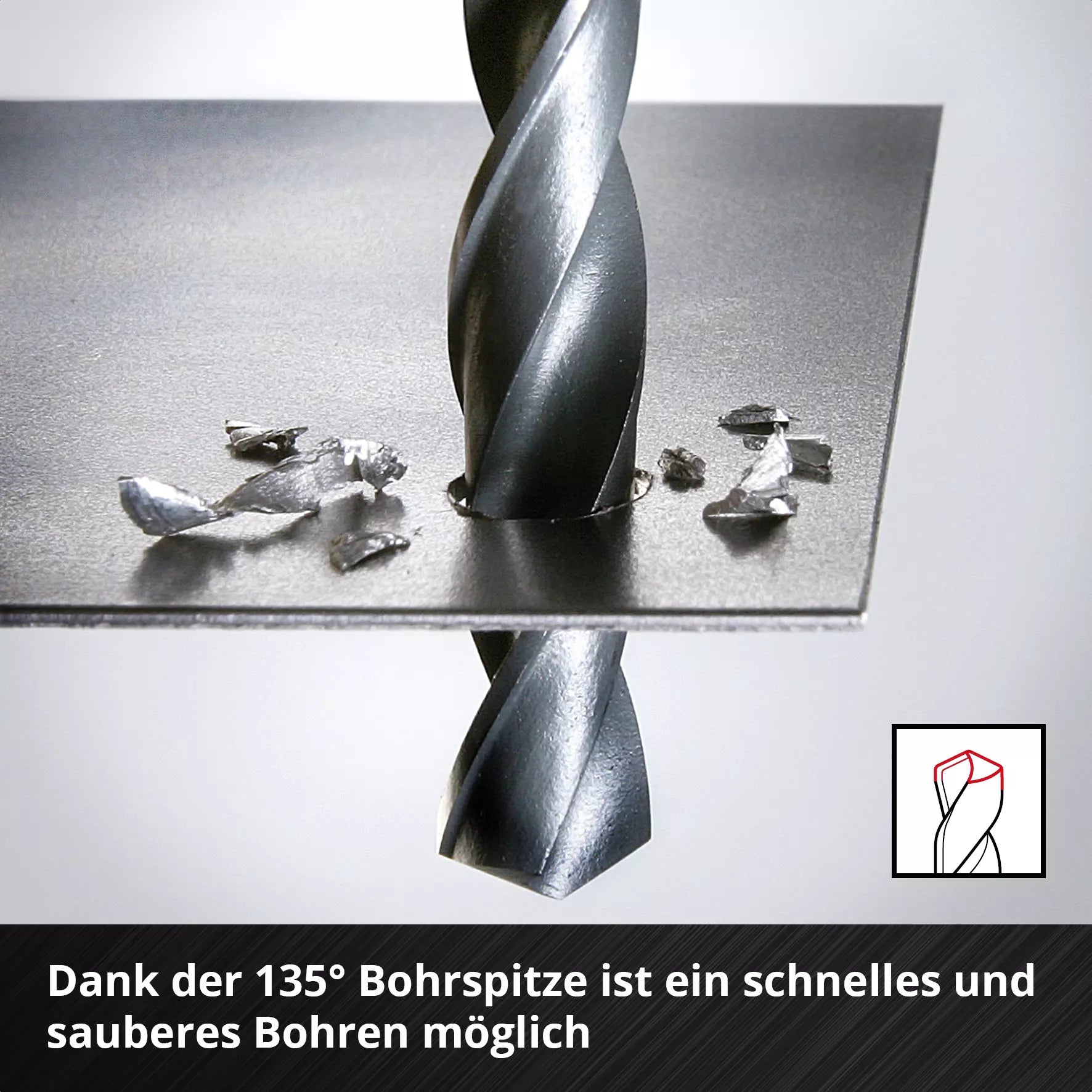 El Juego de brocas HSS-R LS de 6 piezas Einhell (modelo 49423006) es un conjunto práctico y eficiente, diseñado para perforaciones limpias y precisas en diversos materiales como chapa metálica, aluminio, plásticos y metales no ferrosos.