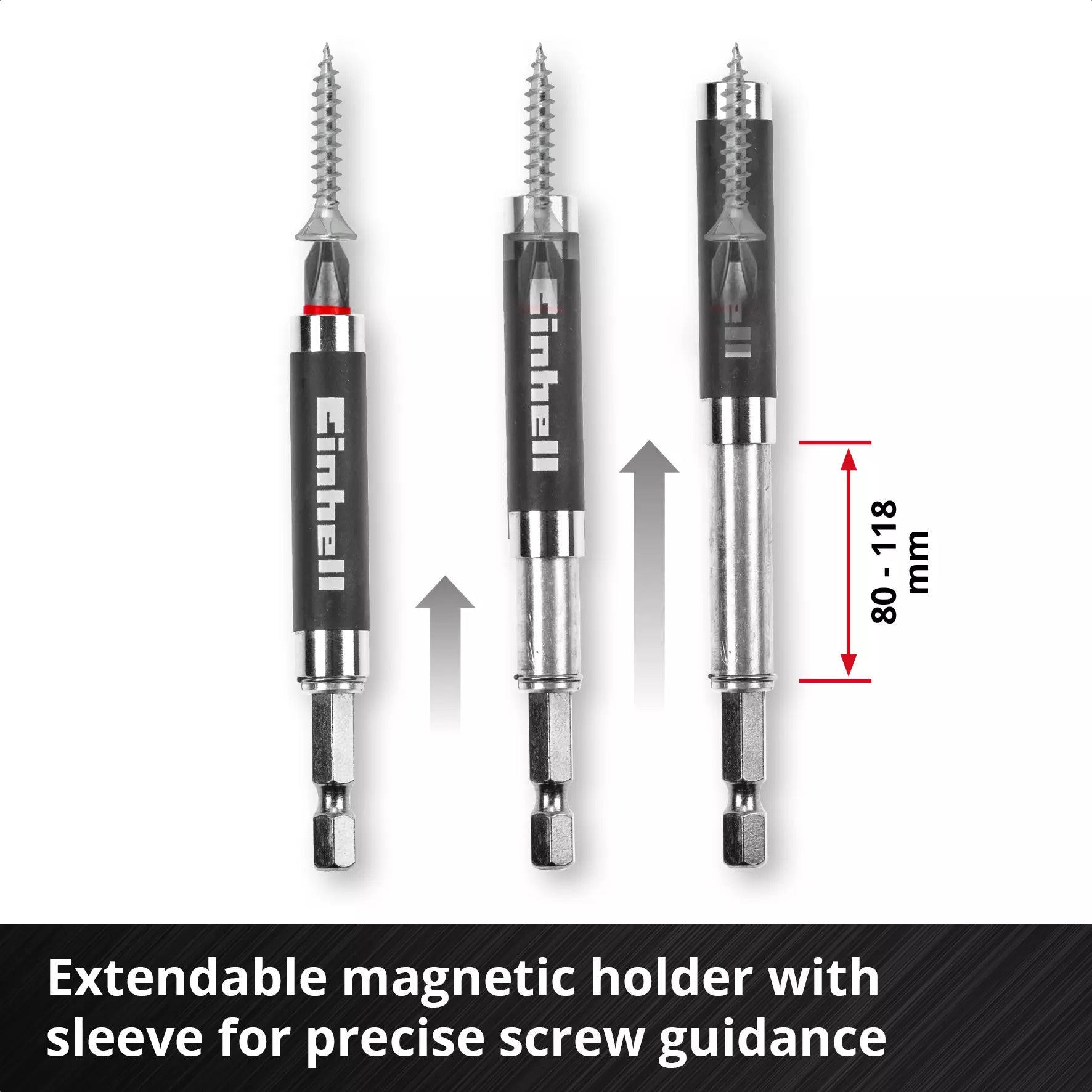 • Soporte magnético extensible (80-118 mm) con vástago E 6.3.