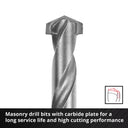 • Diseño optimizado: Las brocas cuentan con una placa de carburo insertada que mejora la durabilidad y facilita la evacuación del polvo de perforación.