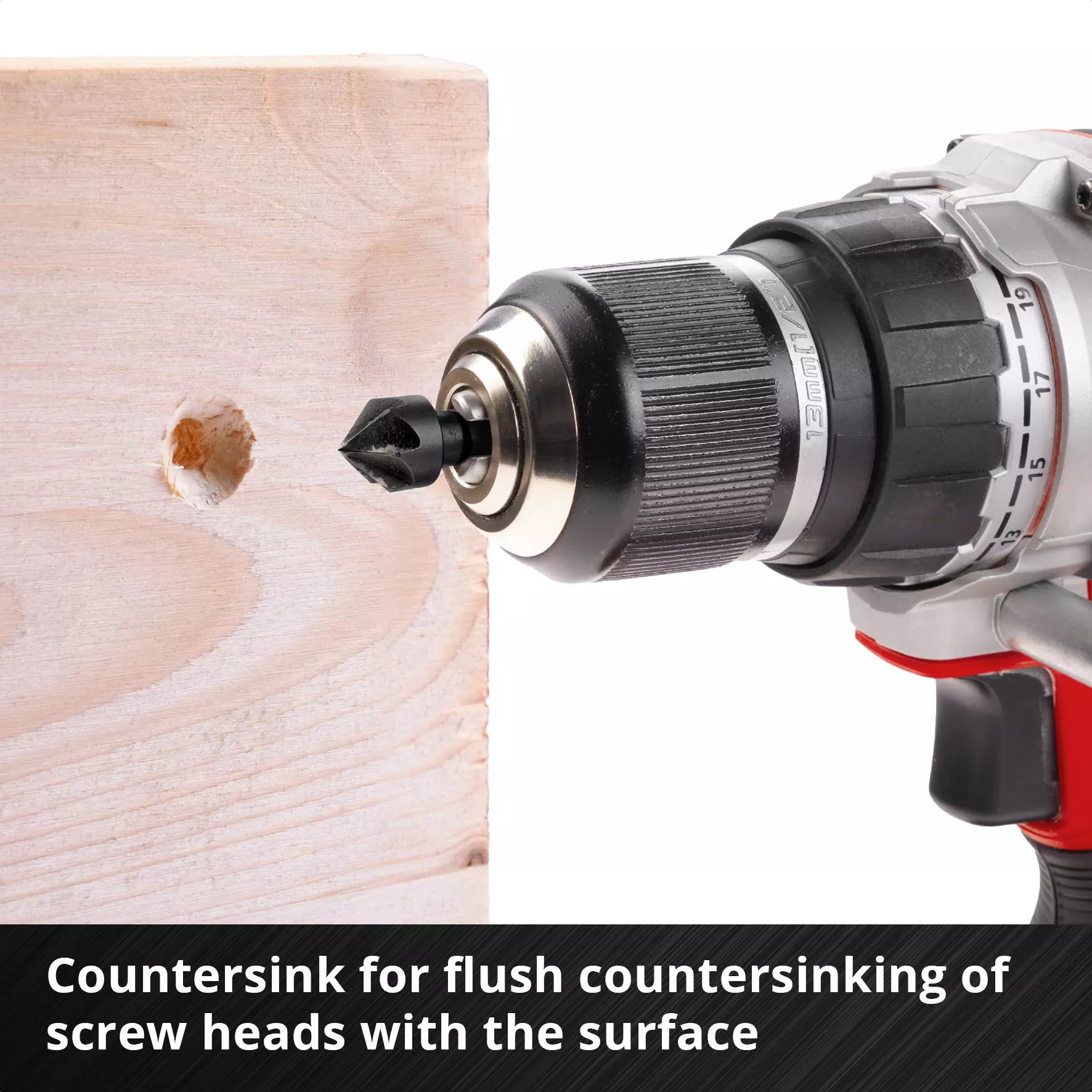 • 1 avellanador de 12 mm con seis filos de corte y vástago E 6.3.