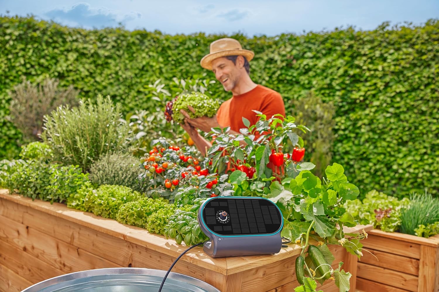 The Gardena AquaBloom L Set is an automatic solar-powered irrigation system , ideal for balconies, terraces, raised garden beds, and spaces without access to water or electricity. Thanks to its 3-in-1 unit (pump, controller, and solar panel with integrated battery), this kit provides precise, programmed drip irrigation for up to 30 plants , freeing you from manual watering when you're away. It's designed for quick and easy installation and offers multiple pre-set watering programs to suit your plants' needs.