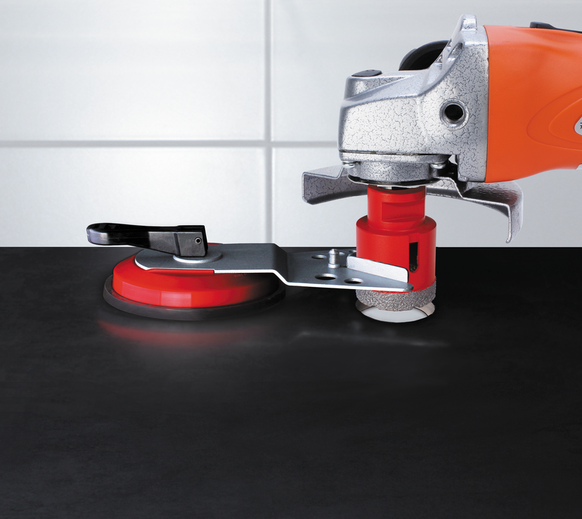 • The MULTIDRILL guide is fixed by means of a suction cup and allows perfect centering even on vertical surfaces.